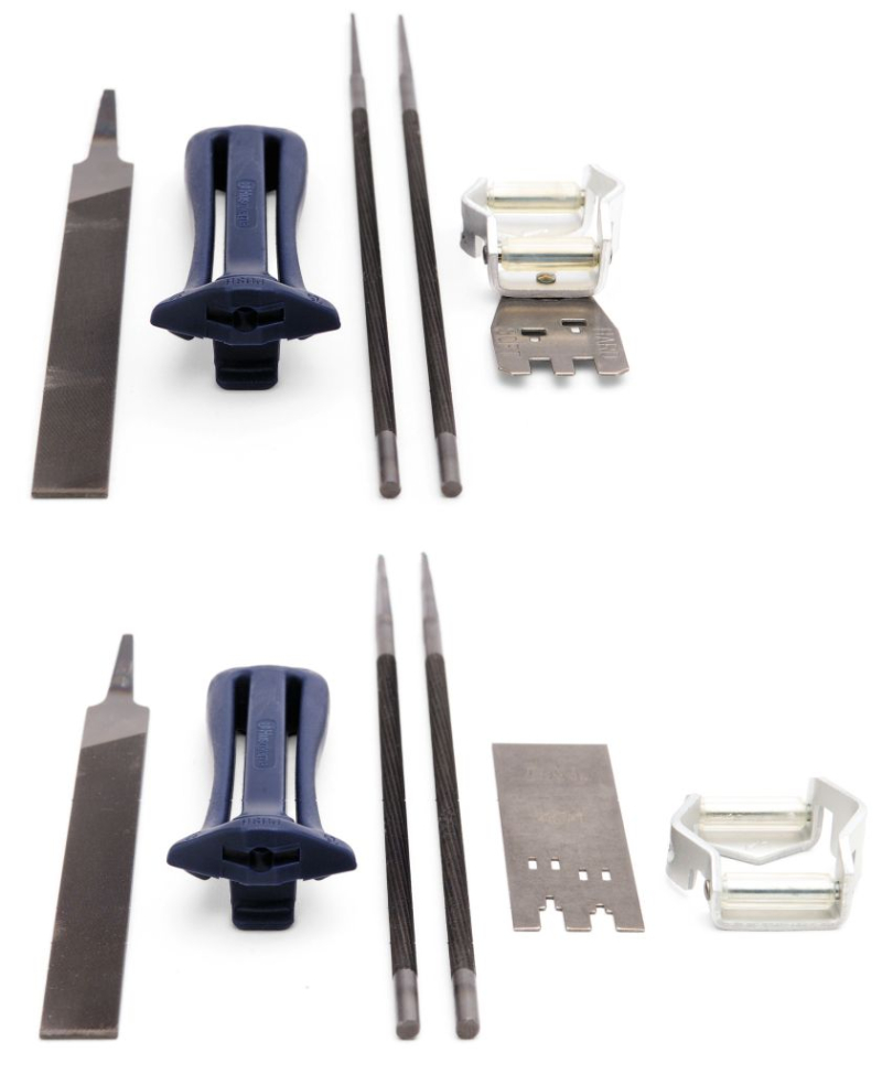 Komplektis on kõik vajalik keti teritamiseks. Korralikult teritatud ketiga on töötamine kergem ja turvalisem. Komplektis on viilikäepide, kombi- ja sügavusmall, kaks ümar- ja üks lapikviil.